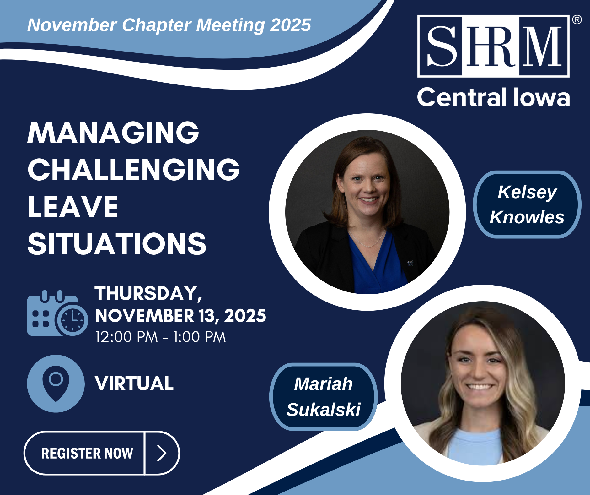 Managing employee leave under laws like the ADA and FMLA can be challenging—especially when guiding leaders and managers through the nuances of compliance, communication, and support. In this interactive session, attorneys Mariah Sukalski and Kelsey Knowles will co-present practical strategies for handling complex leave scenarios. Attendees will gain insights into balancing legal obligations with operational needs, coaching managers through sensitive situations, and fostering a workplace culture that supports both compliance and compassion.